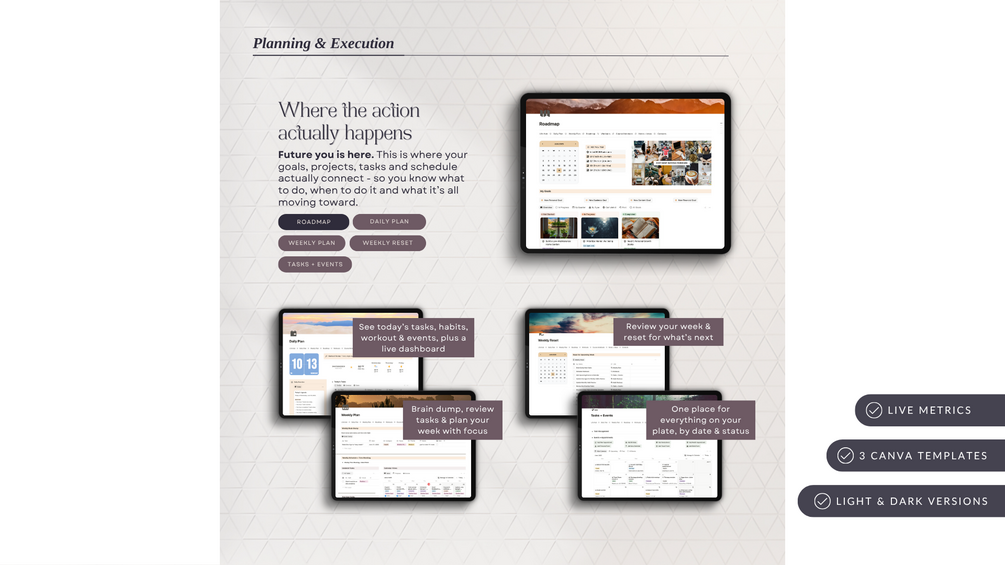 - β Daily + Weekly Plan: Execute + time block like a pro